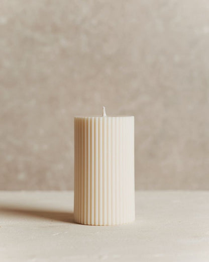 This one is a timeless and elegant addition to elevate your ambiance. Crafted with care, this exquisite candle combines the warmth of ivory with a sophisticated ribbed texture, creating a stunning visual appeal that enhances any space.
